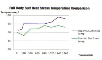 其它生物化學防護服采用絕緣材料制成,散熱性能很差,工作人員如果長期穿戴這類防護服,內部溫度將變得極高。Demron使用特殊材料,可以進行被動散熱,工作人員即使長期穿戴,也不會有任何不舒適的反應。