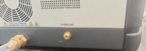 為保證試驗(yàn)結(jié)果準(zhǔn)確,每次試驗(yàn)都需要清洗電極,用測(cè)試油沖洗2-3次,每次測(cè)試結(jié)束后也會(huì)自動(dòng)排油(可設(shè)置,也可手動(dòng)排油)。排油口需平放置桌面,避免排油時(shí)油液倒流使油從溢油口溢出。