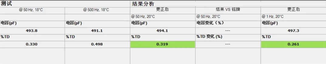 如上圖所示,八根套管的絕緣性能均處于新,從介損來看并無異常,電容和銘牌相比變化在正常范圍內。(ITC為溫度矯正,旨在在不同溫度下能夠以同樣的20℃進行比對,并以顏色顯示在結果上,綠色為全新,黃色為干燥,橙色為可能潮濕,紅色為注意)