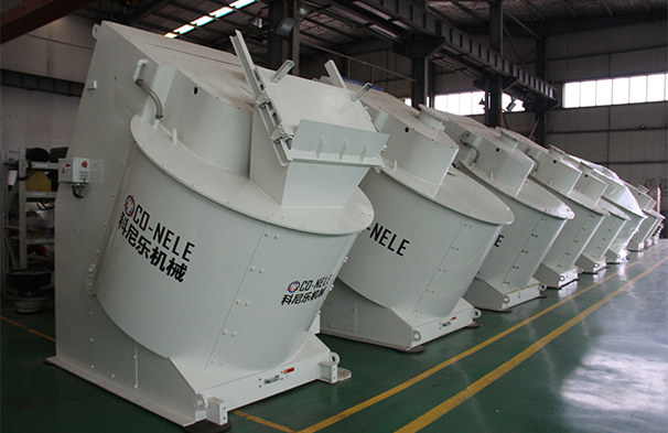 在旋轉(zhuǎn)的物料槽中,物料被送至刮板臂,后在刮板葉片的作用下翻轉(zhuǎn),促進(jìn)了上下方向的宏觀混合。刮板葉片的作用有:不斷地剝離槽底和邊緣的物料送至攪拌中心,在攪拌結(jié)束時促進(jìn)物料短時間內(nèi)排出。