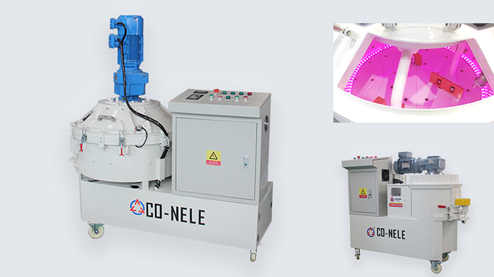 CR11高效強(qiáng)力混合機(jī) 高效強(qiáng)力混合機(jī)使物料槽一起旋轉(zhuǎn),與此同時(shí),使在離心位置上同方向旋轉(zhuǎn)的攪拌轉(zhuǎn)子產(chǎn)生可以剪斷物料的力量。在復(fù)雜的流動(dòng)中形成的速度差,實(shí)現(xiàn)物料微小細(xì)密的攪拌效果。