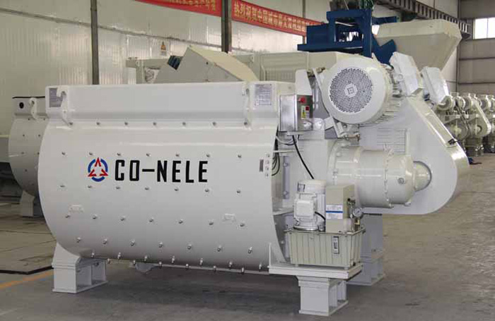 科尼樂的雙臥軸混凝土攪拌機的工作是通過攪拌軸的回轉運動來帶動攪拌葉片對筒內物料進行剪切、擠壓和翻轉推移等攪拌作用,使物料在相對的劇烈運動中得到充分的拌合,因而它具有拌合質量好、能耗低、效率高等優(yōu)點。在現(xiàn)代建筑中的廣泛使用可以減輕工人的勞動強度、提高混凝土的質量。