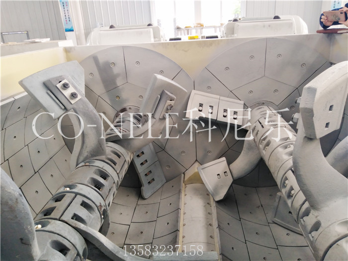 雙臥軸強(qiáng)制式混攪拌機(jī)的攪拌原理決定了在攪拌過(guò)程中混凝土大部分被堆積在兩個(gè)攪拌軸之間,使得攪拌臂和葉片與底部襯板之間的磨損降低,只有輕微磨損,甚至無(wú)磨損,使用壽命長(zhǎng)。